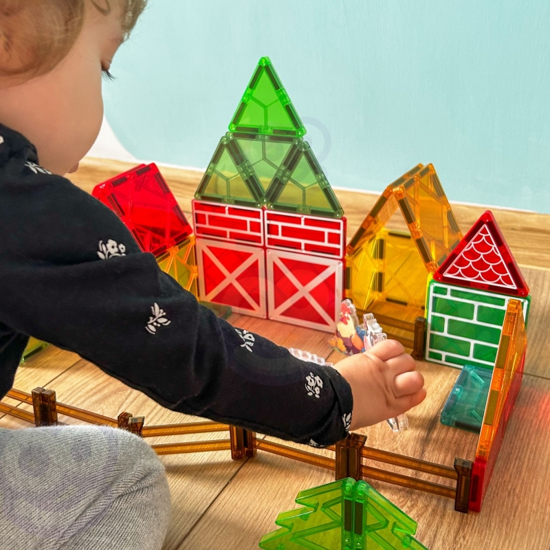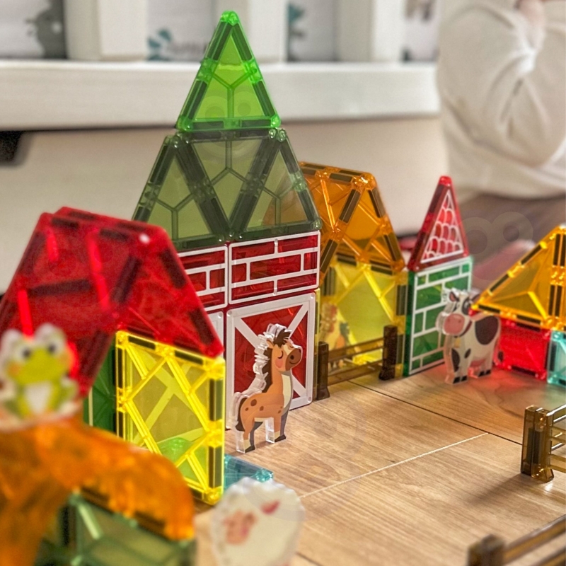 Zestaw magnetycznych klocków konstrukcyjnych marki Woopie to wyjątkowa zabawka, która pozwoli dziecku na zbudowanie swojej własnej farmy Dzieci mogą wznosić stodoły, ogrodzenia dla zwierząt, budować silosy i inne budynki gospodarcze, eksperymentując z różnymi konfiguracjami. Magnetyczne połączenia sprawiają, że konstrukcja własnej farmy jest łatwa i przyjemna, a każda budowla pozostaje stabilna podczas zabawy.