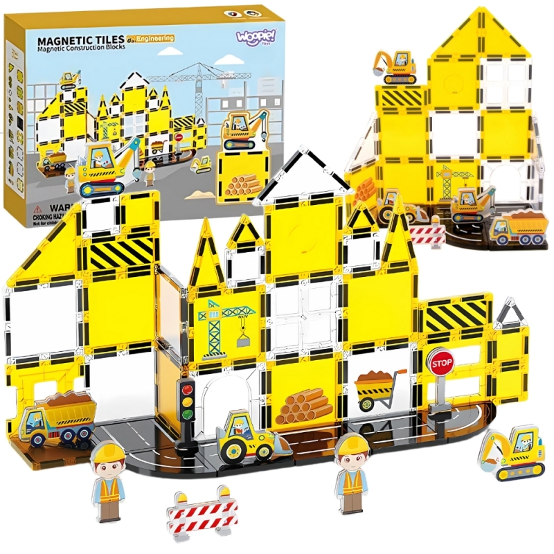Zestaw magnetycznych klocków Plac Budowy marki Woopie to fascynująca przygoda ze światem budowania, która zamieni każde dziecko w małego inżyniera! Ten 47-elementowy zestaw pozwala tworzyć imponujące konstrukcje budowlane, place budowy i architektoniczne arcydzieła dzięki silnym magnesom, które łączą się z satysfakcjonującym kliknięciem. Żywe żółte i białe płytki doskonale współgrają z pojazdami budowlanymi i figurkami robotników, tworząc realistyczny świat pełen możliwości. Magnesy neodymowe gwarantują stabilność konstrukcji, a przezroczyste elementy dodają efektu wizualnego, który zachwyci każdego małego budowniczego.