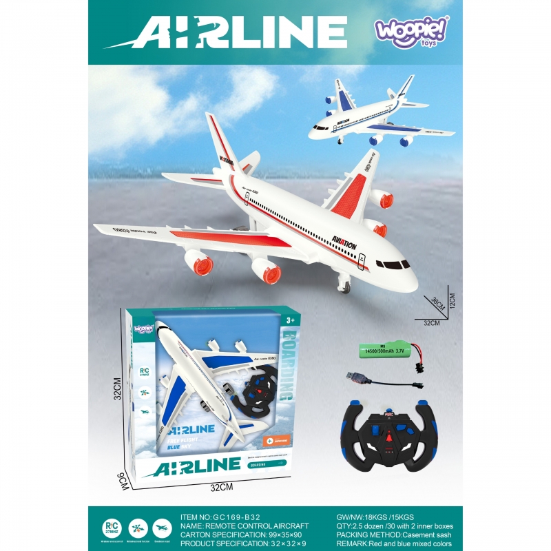 Niebieski Zdalnie Sterowany Samolot Pasażerski AIRLINE pozwoli na wejście na wyższy poziom zabawy w odgrywanie roli pilota. Wykonany z wysokiej jakości materiałów z efektownym biało-czerwonym designem w paski z pewności zapewni niezapomniane doznania podczas zabawy.