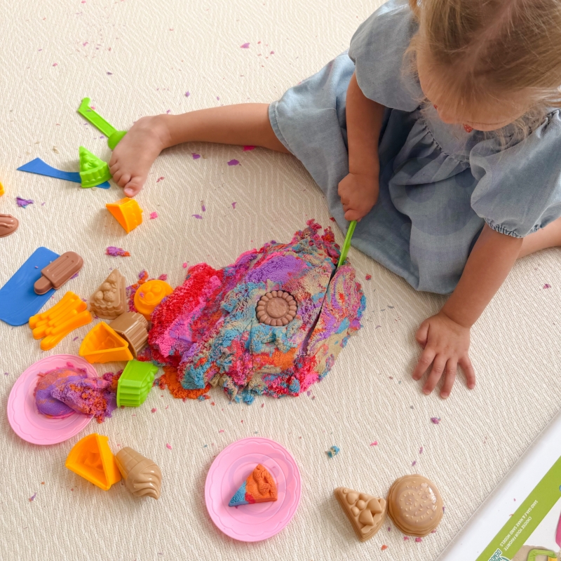Przenieś świat kreatywnych budowli i słodkich wypieków do swojego domu dzięki Magicznemu Piaskowi Kinetycznemu Play Sand od marki Woopie! Ten fantastyczny zestaw w poręcznej walizce to gwarancja godzin fascynującej zabawy bez bałaganu. Piasek, który "czuje się świetnie" jest niezwykle miękki i przyjemny w dotyku, idealnie nadaje się do formowania, ugniatania i tworzenia nieskończonej liczby kształtów. Stwórz pyszne lody, kolorowe ciastka, hot doga,czy inne pyszności – ogranicza Cię tylko wyobraźnia! To idealny prezent, który rozwija zmysły i kreatywność każdego małego artysty.