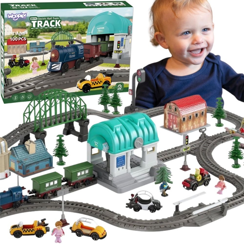 Przenieś swoje dziecko w świat ekscytujących przygód z rozbudowanym zestawem kolejki elektrycznej od Woopie. Ten kolorowy i bogaty w szczegóły komplet to doskonała propozycja dla małych fanów transportu, maszyn i budowania. W zestawie znajduje się klasyczna lokomotywa z realistycznymi efektami dźwiękowymi i świetlnymi, wagony towarowe, miniaturowe samochodziki, figurki postaci oraz wiele elementów scenerii – od tunelu i mostu po stację kolejową i znaki drogowe. Dzięki temu dziecko może tworzyć własne, niepowtarzalne trasy oraz historie z życia małego miasteczka kolejowego. Magnetyczne złącza pozwalają łatwo i stabilnie łączyć wagony, a ruch lokomotywy po torach wygląda jak prawdziwy przejazd kolejowy! To nie tylko zwykła kolejka – to cała mała sceneria miasteczka, w której dziecko może rozwijać swoją kreatywność, budując różne konfiguracje torów i odgrywając scenki z codziennego życia. Elektryczna lokomotywa jadąc po torach przejeżdża przez most i tunel, zatrzymuje się na stacji, a wszystko to z dźwiękiem i ruchem, który fascynuje najmłodszych. Dziecko uczy się planowania, logicznego myślenia i rozwija zdolności manualne, tworząc przy tym fascynujące scenariusze podróży i przewozu towarów. Zestaw składa się ze 100 elementów, wykonanych z trwałych i bezpiecznych materiałów, odpornych na intensywną zabawę.
