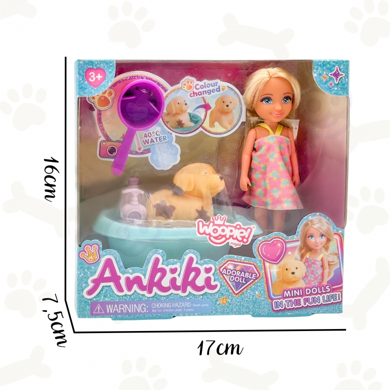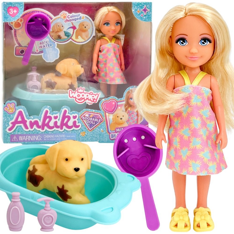 Ten wyjątkowy zestaw Laleczki z pieskiem do kąpieli od marki WOOPIE ROYAL! to gwarancja fantastycznej, wciągającej zabawy w troskliwego opiekuna zwierząt! Największą atrakcją jest magiczna funkcja zmiany wyglądu pieska – brązowe plamki znikają pod wpływem wody, co urealnia kąpiel i zachwyca maluchy. W komplecie znajduje się urocza lalka piesek oraz pełne wyposażenie do pielęgnacji, w tym wanna z prysznicem. Zestaw rozwija w dziecku odpowiedzialność, wyobraźnię i zdolności manualne. Solidne i bezpieczne wykonanie gwarantuje długie godziny radości!