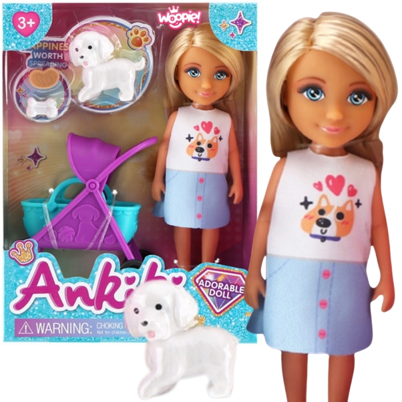 Przedstawiamy uroczą laleczkę Niki, od marki WOOPIE ROYAL! która zapewni mnóstwo radosnej zabawy w odgrywanie ról! Ten wspaniały zestaw inspiruje do opieki nad zwierzętami i odgrywania scenek, dzięki dołączonemu białemu pieskowi i akcesoriom. Lalka ma modny, letni strój i własny wózek/nosidełko, idealne na wspólne spacery i przygody. Komplet zawiera również smakołyki dla pupila, co dodatkowo urealnia zabawę w opiekę. To doskonały prezent dla dzieci powyżej 3 lat, rozwijający empatię i wyobraźnię.