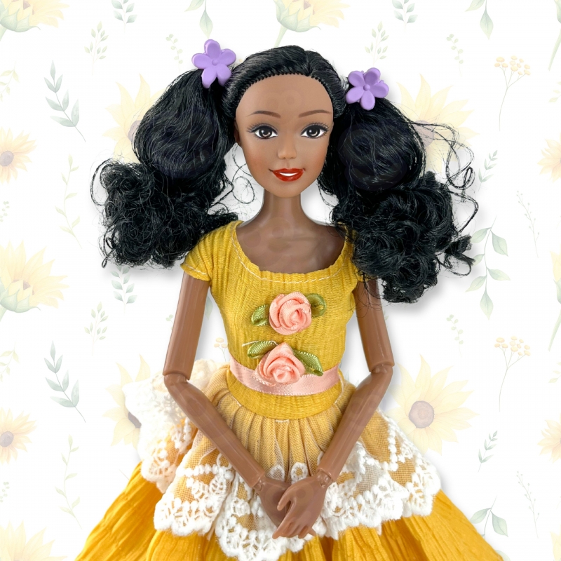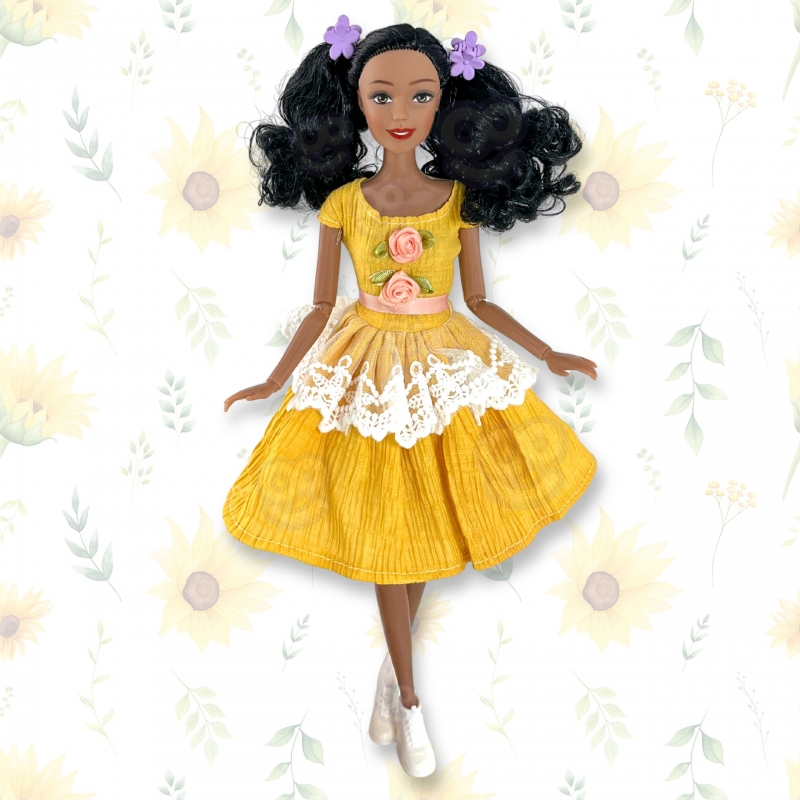Poznaj lalkę Emi – elegancką bohaterkę z Klasycznej Kolekcji Modowej, która zachwyca swoim urokiem i dbałością o każdy detal! Jej żółta sukienka z koronką i różyczkami, błyszczące buciki oraz piękne, czarne włosy sprawiają, że wygląda jak prawdziwa dama. To nie tylko zabawka, ale inspiracja do tworzenia własnych historii i zabaw w świat mody. Dzięki eleganckiemu opakowaniu Emi to również doskonały pomysł na prezent dla dziewczynki w każdym wieku. Z tą lalką każda chwila zamienia się w pełną uroku, kreatywną zabawę!