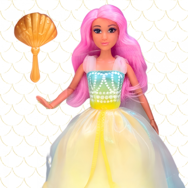Poznaj uroczą Księżniczkę Lily od marki Woopie– lalkę inspirowaną podwodnym światem syrenek. Jej długie, różowe włosy zachęcają do czesania i tworzenia fantazyjnych fryzur. Błyszcząca, pastelowa suknia w odcieniach morskiej piany sprawia, że wygląda jak prawdziwa księżniczka z oceanu. W zestawie znajduje się złoty grzebień w kształcie muszli oraz elegancki pierścionek, które dopełniają stylizacje. To doskonały prezent dla dzieci od 3 lat, który rozwija wyobraźnię i pozwala tworzyć niezliczone, bajkowe historie.