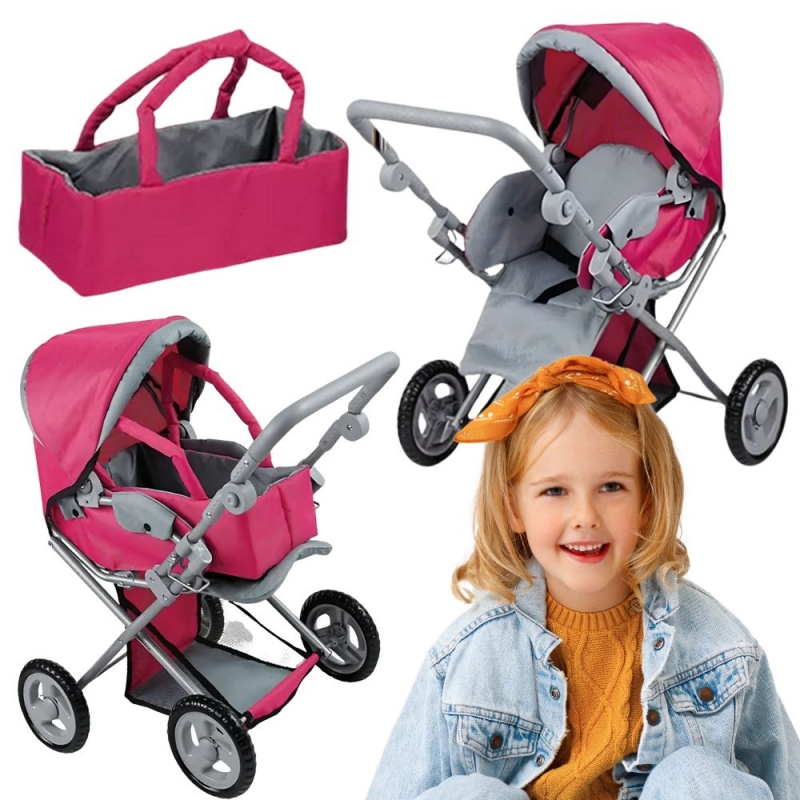 Stylowy i funkcjonalny wózek dla lalek od marki WOOPIE ROYAL w kolorze różowym to idealna propozycja dla każdej małej miłośniczki zabawy lalkami! Wózek posiada regulowaną rączkę, co pozwala na dostosowanie go do wzrostu dziecka. Jego ciche koła gwarantują płynność w prowadzeniu, a stabilna konstrukcja zapewnia bezpieczną zabawę. Dodatkowo wózek zamienia się w spacerówkę, a dzięki wyjmowanej części może być także nosidełkiem lub torbą. Wózek posiada daszek, który można wysuwać i zamykać oraz pojemny kosz na drobiazgi.