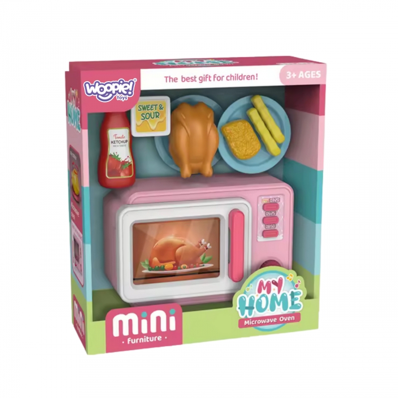 Zabawkowa Różowa Kuchenka Mikrofalówka od marki Woopie to nowoczesna zabawka, która wnosi kuchenne rewolucje prosto do pokoju dziecięcego! Dzięki realistycznym funkcjom i efektom świetlno-dźwiękowym, ten interaktywny zestaw nie tylko przyciąga wzrok dzieci, ale także inspiruje do kreatywnego i edukacyjnego odgrywania ról. Mikrofalówka została zaprojektowana tak, aby jak najlepiej odwzorować prawdziwe urządzenie AGD — wyposażona jest w świecące wnętrze, obracający się talerz oraz efekty dźwiękowe towarzyszące pracy urządzenia. Dodajmy do tego komplet akcesoriów kulinarnych, a dziecko może bez końca bawić się w gotowanie! Dzieci wybierają czas odgrzewania, otwierają i zamykają drzwiczki, wkładają kurczaka, frytki lub nuggeta, a następnie obserwują, jak talerz się kręci, a dioda LED emituje światło, imitując pracę mikrofalówki. Zabawa tą kuchenką pozwala dzieciom uczyć się poprzez odgrywanie ról – To idealna zabawka edukacyjna, która pobudza wyobraźnię i wprowadza dzieci w świat codziennych obowiązków w zabawny sposób.