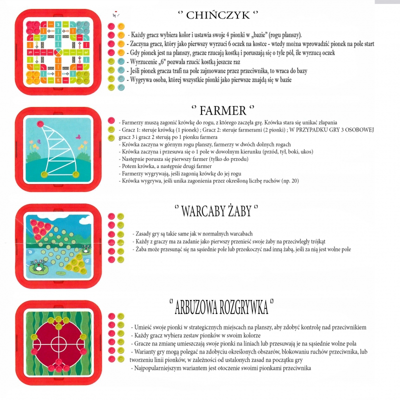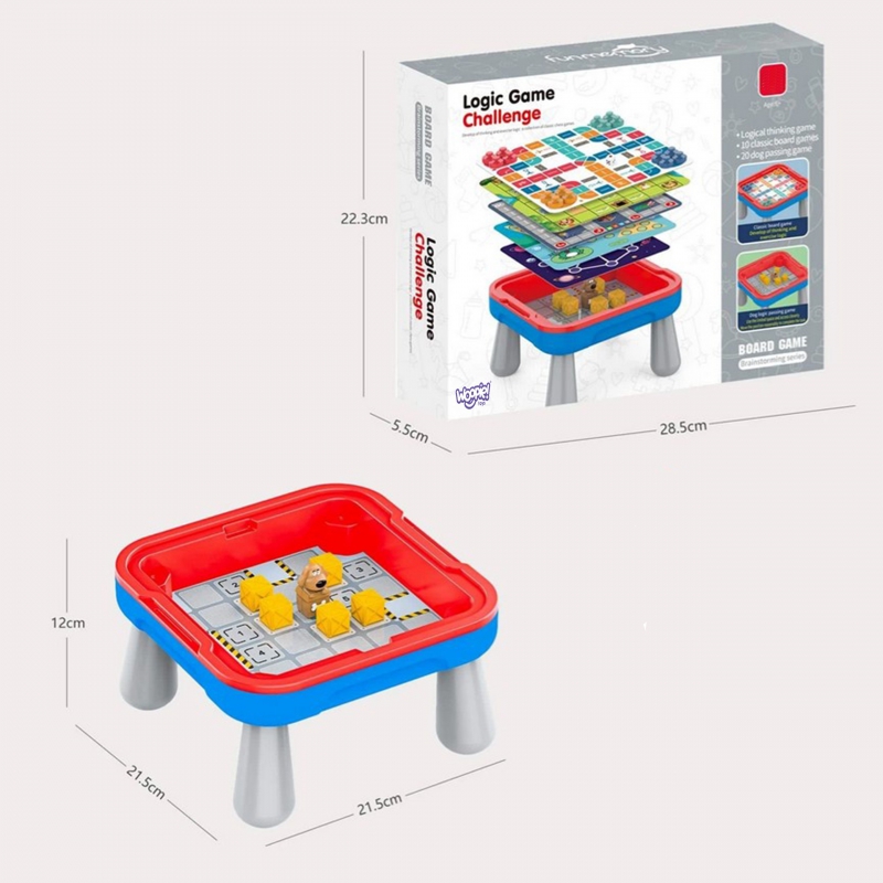 Stolik Gier Planszowych 11w1 od marki WOOPIE to niezwykle wszechstronny zestaw edukacyjny, który łączy fantastyczną zabawę z intensywnym rozwojem logicznego myślenia. Ten kompaktowy stolik to tak naprawdę 11 różnych mini gier i łamigłówek, zapewniając różnorodny wachlarz wyzwań dla całej rodziny. Zestaw zawiera zarówno klasyczne planszówki (jak Chińczyk, Warcaby, Kółko i krzyżyk), jak i gry logiczne, przestrzenne oraz zadania z dopasowaniem wzorów. Wygodna konstrukcja w formie stolika jest idealna do gry na siedząco, a łatwość przechowywania i przenoszenia sprawia, że jest to doskonała propozycja na domowe wieczory, a także na podróż.