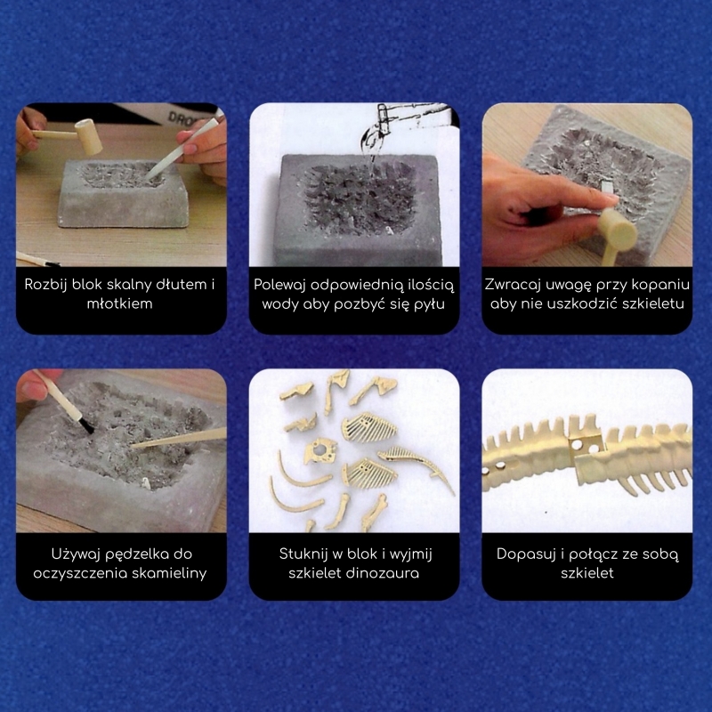 Uwolnij w dziecku pasję odkrywcy i przemień zwykłe popołudnie w wielką wyprawę po zaginione skarby prehistorii! Ten kompletny zestaw archeologiczny marki Woopie przenosi młodych badaczy prosto do epoki lodowcowej. W solidnym „bloku skalnym” ukryliśmy elementy szkieletu mamuta, które czekają, by je wykopać, oczyścić i złożyć w imponujący model 3D. To nie jest kolejna paczka klocków – to prawdziwe doświadczenie wykopalisk: uderzenia młotka, precyzyjna praca dłutkiem, pędzelkiem i rosnąca ekscytacja, gdy spod „skały” wyłaniają się kość po kości.