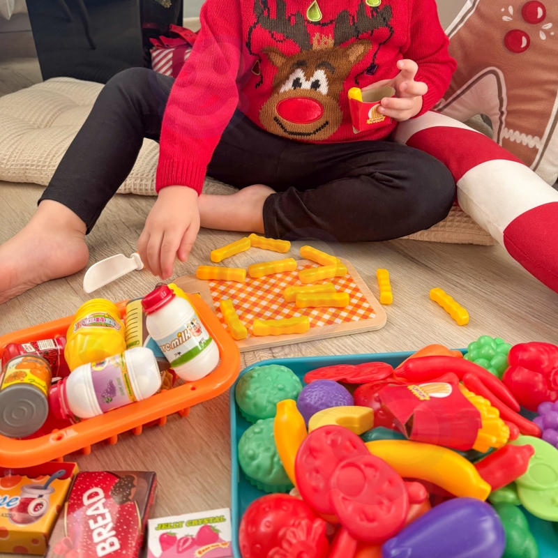 Ten kolorowy i bogaty zestaw zabawkowego jedzenia to doskonała propozycja dla dzieci, które uwielbiają zabawy w gotowanie, sklep czy restaurację. „Delicious Play Set” rozwija wyobraźnię, kreatywność oraz uczy rozpoznawania różnych produktów spożywczych. Aż 120 elementów zapewni godziny wspaniałej zabawy – samodzielnej lub w gronie rówieśników!