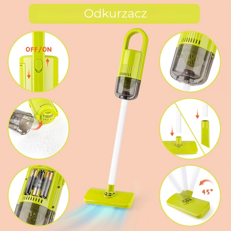 Zadbaj o rozwój swojego dziecka w sposób, który jednocześnie dostarcza mu mnóstwo radości i uczy odpowiedzialności. Jest to możliwe dzięki zestawowi do sprzątania od marki WOOPIE, który nie tylko zainspiruje Twojego malucha do pomocy w domu, ale także pomoże w nauce cennych umiejętności życiowych. Ten zestaw to doskonała okazja, aby wprowadzić dzieci w świat porządku i organizacji poprzez zabawę, która rozwija wyobraźnię i kreatywność. Dzięki niemu codzienne obowiązki stają się dla najmłodszych fascynującą przygodą, podczas której uczą się dbać o swoje otoczenie i współpracować z innymi. Zestaw do Sprzątania to coś więcej niż zabawka – to narzędzie, które pomoże Twojemu dziecku rozwijać poczucie odpowiedzialności i samodzielność. W trakcie zabawy maluchy nauczą się organizować swoją przestrzeń, utrzymywać porządek i dbać o rzeczy osobiste. Te umiejętności są nie tylko przydatne na co dzień, ale także kształtują pozytywne nawyki na całe życie.