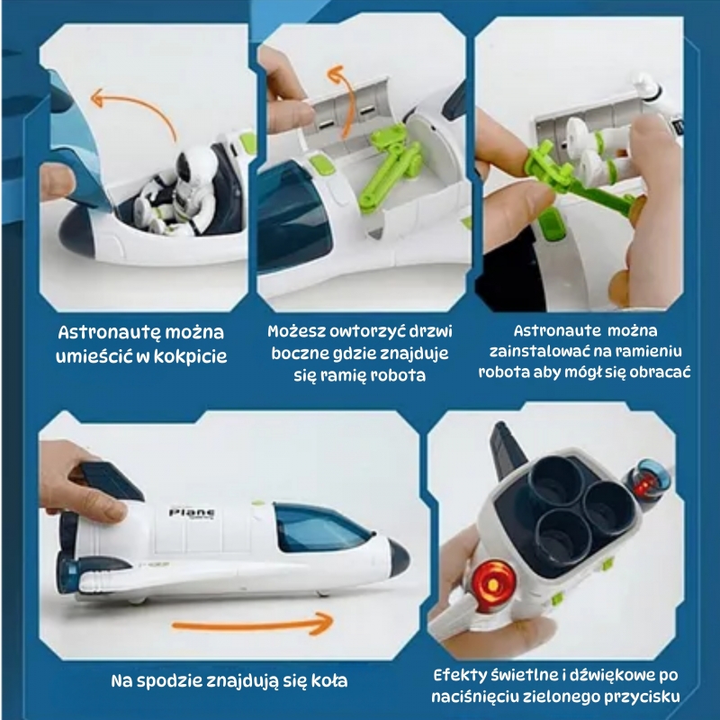 Wejdź do świata fascynującej eksploracji kosmosu z Kosmicznym zestawem z Promem i Łazikiem od Woopie! To idealna propozycja dla małych odkrywców, którzy marzą o podboju obcych planet. Dzięki przemyślanej konstrukcji i interaktywnym funkcjom, dziecko nie tylko świetnie się bawi, ale również rozwija swoje zdolności poznawcze, motoryczne i wyobraźnię. Boczne drzwi promu otwierają się, ukazując przestrzeń do załadunku, a ruchome ramię robotyczne, do którego można doczepić figurkę astronauty obraca się i symuluje pracę w przestrzeni kosmicznej. Na dachu łazika znajduje się interaktywny radar – po naciśnięciu przycisku, antena automatycznie się podnosi, co daje dodatkowy element zabawy i zaskoczenia. To nie wszystko! Po zakończeniu misji wystarczy nacisnąć przedni zderzak, a radar samoczynnie się chowa – to jak prawdziwa technologia kosmiczna w miniaturowym wydaniu! Zestaw oferuje świetlne i dźwiękowe efekty, ruchome elementy, oraz funkcje edukacyjne, które wspierają rozwój dziecka na wielu poziomach. To nie tylko zabawka – to początek prawdziwej przygody międzygwiezdnej, która rozpoczyna się w Twoim domu!