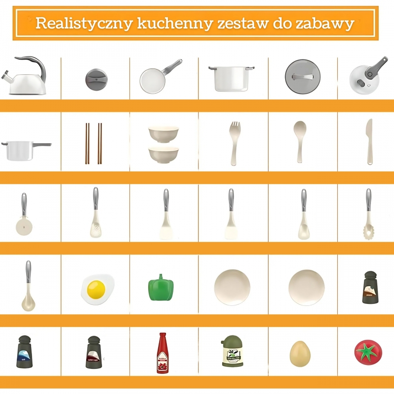 Ten obszerny zestaw do zabawy w kuchnię od marki Woopie to idealny prezent dla każdego małego kucharza! Zabawka pozwala dzieciom na naśladowanie dorosłych i odgrywanie ról, rozwijając ich kreatywność, wyobraźnię oraz zdolności manualne. Zestaw zawiera wszystko, czego potrzeba do przygotowania wymarzonego posiłku. W skład zestawu wchodzą liczne naczynia, garnki, patelnia, a nawet czajnik, wszystko wykonane z dbałością o detale. Dodatkowe akcesoria, takie jak sztućce, warzywa, jajko i przyprawy, sprawiają, że zabawa staje się niezwykle realistyczna i wciągająca. To doskonały sposób na naukę przez zabawę, rozwijanie zdolności społecznych i spędzanie czasu z rodzicami.