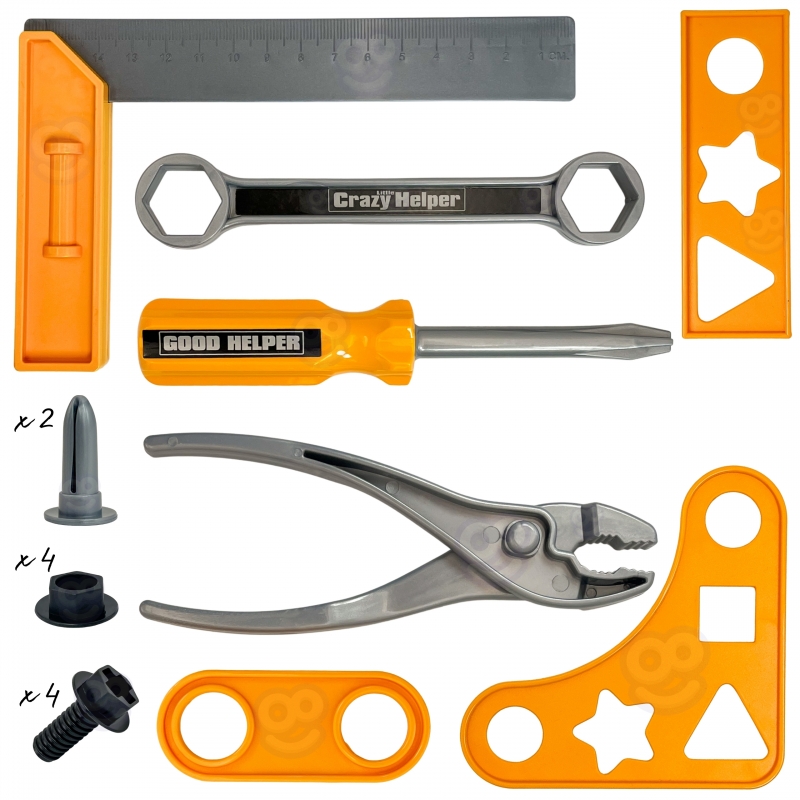 Szybki podglądMateriałowy pas, oraz zestaw 12 narzędzi stolarskich. Komplet pozwala na wykonanie wszelkich prac stolarskich, a także zawiera identyfikator pracownika, na którym dziecko może zapisać swoje imię, oraz przykleić zdjęcie. Maluch poczuje się jak prawdziwy fachowiec, który potrafi naprawić każdą usterkę!