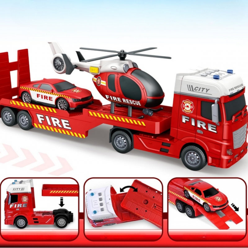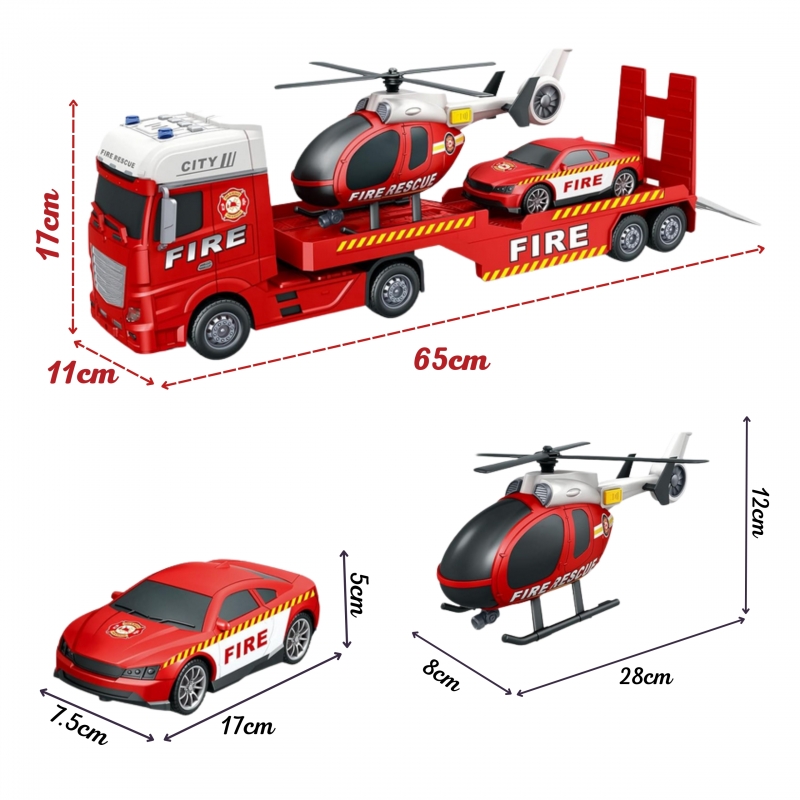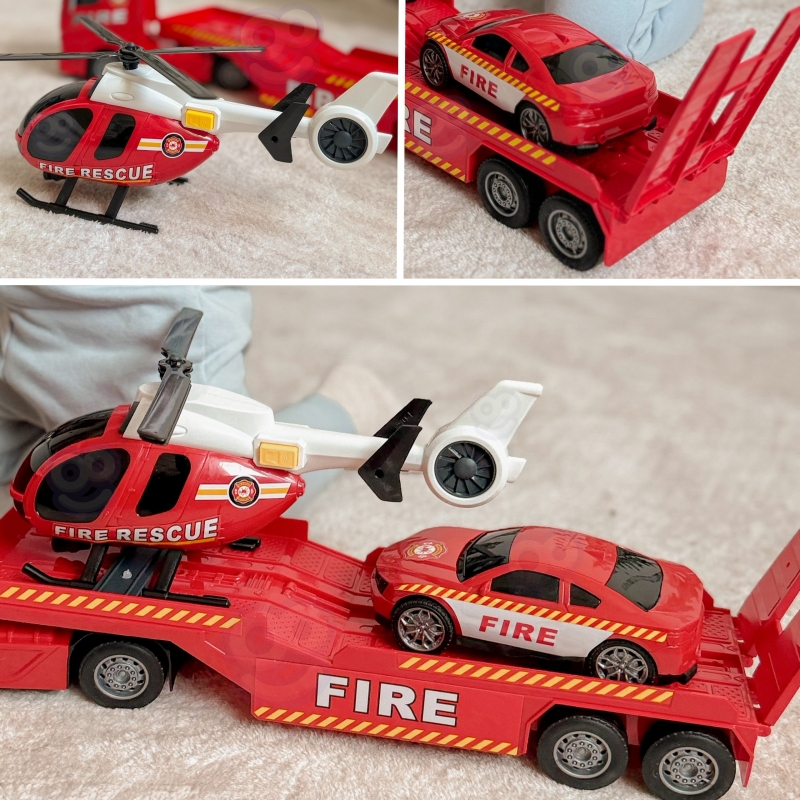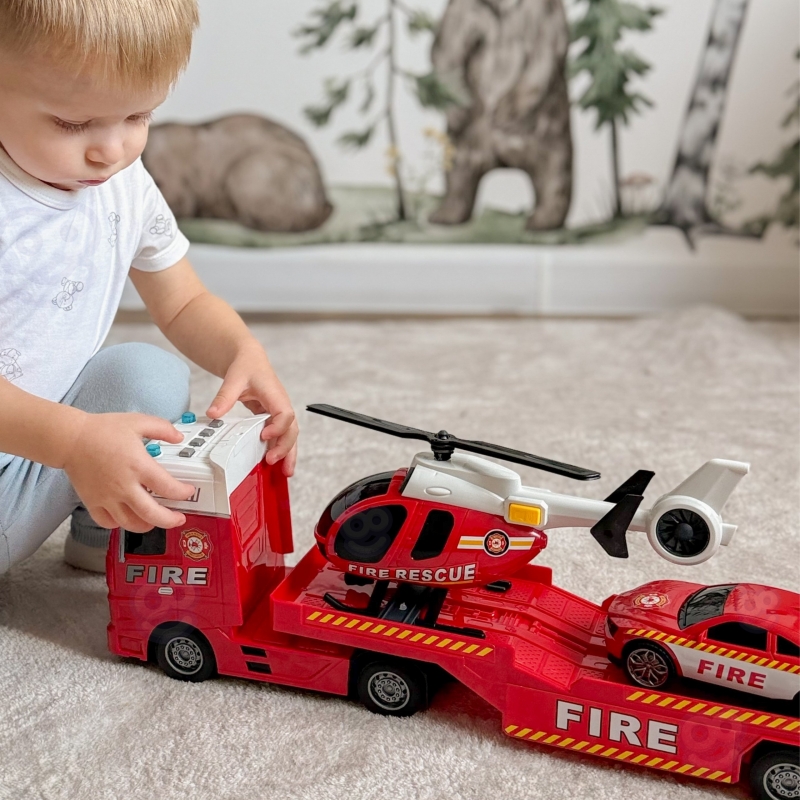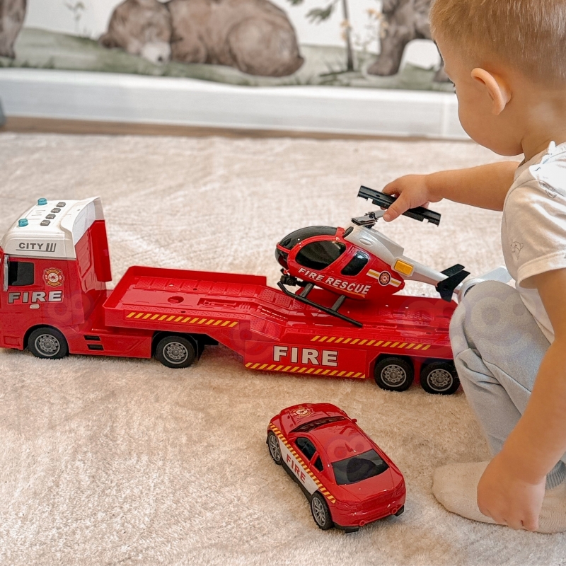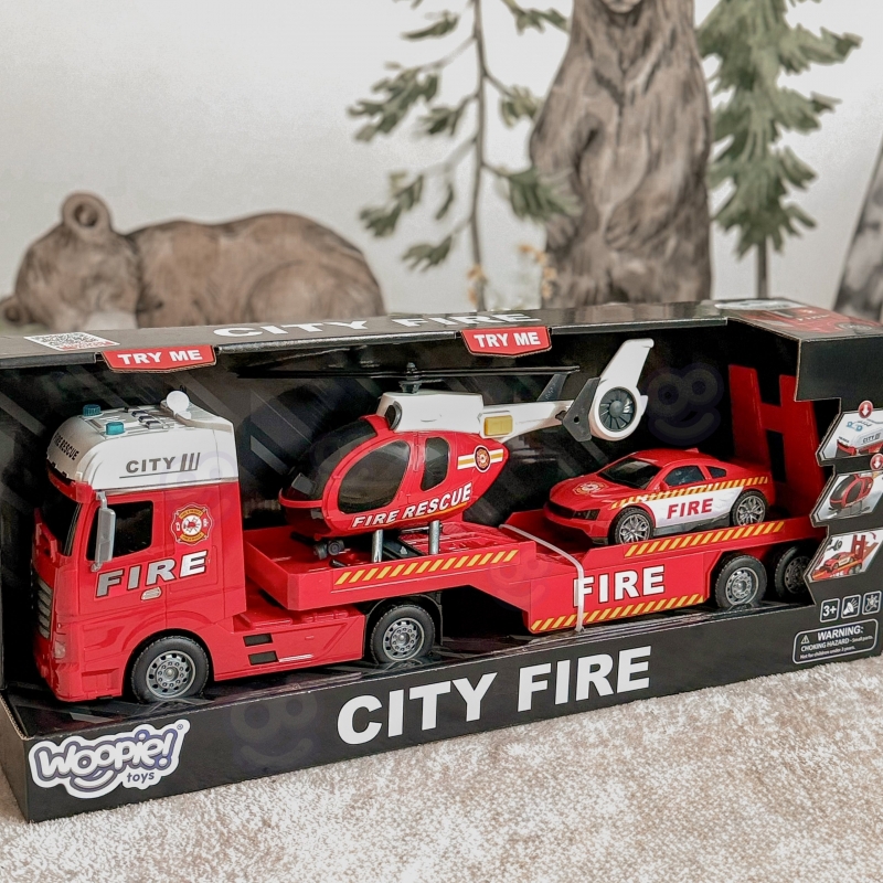 Zestaw straży pożarnej z lawetą, helikopterem i samochodzikiem od marki Woopie dostarczy Twojemu dziecku niezliczone godziny kreatywnej i emocjonującej zabawy. Zabawka została zaprojektowana z myślą o najmłodszych użytkownikach, łącząc w sobie edukację z rozrywką, a także rozwój ważnych umiejętności manualnych i społecznych. Każdy element zestawu wykonano z trwałych i bezpiecznych materiałów, które są przyjazne dla dzieci i odporne na intensywne użytkowanie. Dzięki temu zabawka jest nie tylko atrakcyjna wizualnie, ale również funkcjonalna i wytrzymała. Zestaw zawiera klasyczne pojazdy, które dzieci doskonale znają i uwielbiają – lawetę, która umożliwia transport innych pojazdów, helikopter z realistycznie obracającym się śmigłem oraz samochód straży pożarnej. Zarówno laweta jak i helikopter posiadają funkcje świetlne i dźwiękowe aktywowane przyciskami. Zestaw zainteresuje dzieci fascynujące się motoryzacją, akcjami ratunkowymi oraz zabawą w strażaka, ucząc jednocześnie odpowiedzialności i pracy zespołowej.