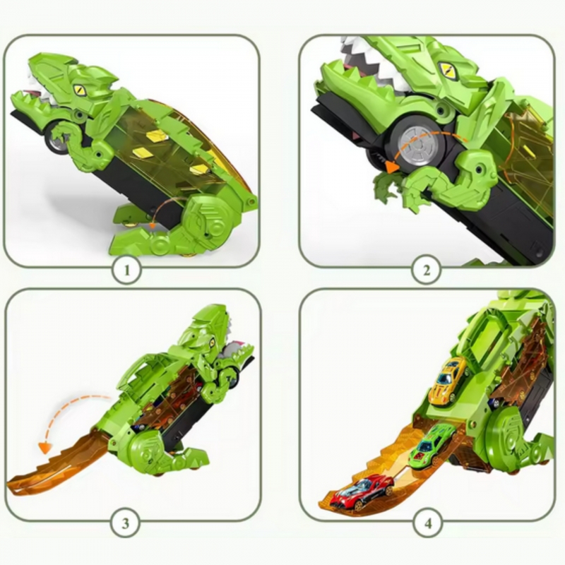 Zanurz się w fascynującym świecie prehistorycznych przygód i motoryzacyjnej zabawy! Ten niesamowity Dinozaur Pożeracz z autkami od marki Woopie to prawdziwa gratka dla każdego małego miłośnika pojazdów i prehistorycznych stworzeń. Dinozaur-ciężarówka nie tylko mieści cały zestaw samochodzików w środku, ale pełni także funkcję interaktywnej zjeżdżalni i służy jako wygodna walizka z uchwytem . Po rozłożeniu zabawka zmienia się w tory wyścigowe, po których mogą pędzić dołączone samochodziki. Zestaw zawiera aż 12 małych pojazdów, dzięki czemu zabawa może trwać godzinami – solo lub z przyjaciółmi! Ruchome elementy, takie jak otwierana paszcza, łapy dinozaura czy opuszczana rampa, wprowadzają dodatkowy wymiar interaktywności, rozwijając przy tym zdolności manualne i wyobraźnię dziecka. Całość wykonana została z solidnego, bezpiecznego tworzywa, odpornego na intensywną zabawę. Dzięki możliwości składania i wygodnej rączce, zestaw świetnie sprawdzi się zarówno w domu, jak i w podróży. To idealna zabawka dla dzieci kochających pojazdy, dinozaury, a także kreatywne konstrukcje i dynamiczną rozgrywkę. Ten zestaw z pewnością stanie się ulubionym elementem dziecięcej kolekcji!